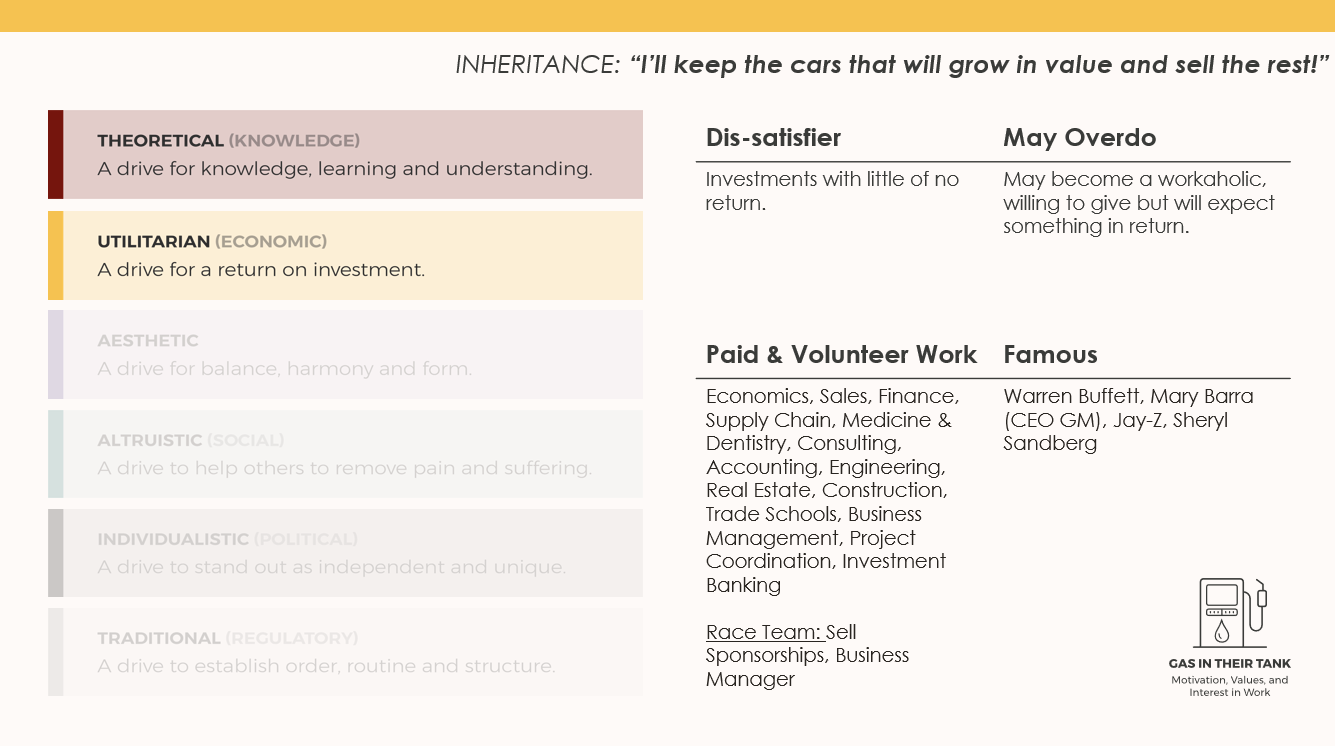 Each interest, high or low, of the Utilitarian motivator is important to understand for your team. Appreciate the people around you with these drivers and apply this knowledge to help them be successful.